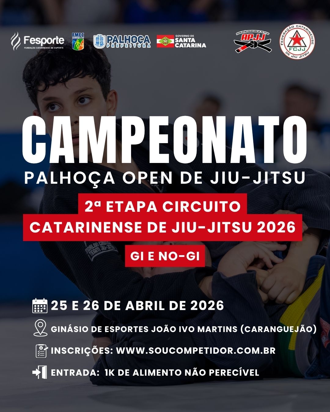 Palhoca recebe nos dia 25 e 26 de abril, 2 etapa do Circuito Catarinense de Jiu-Jitsu.